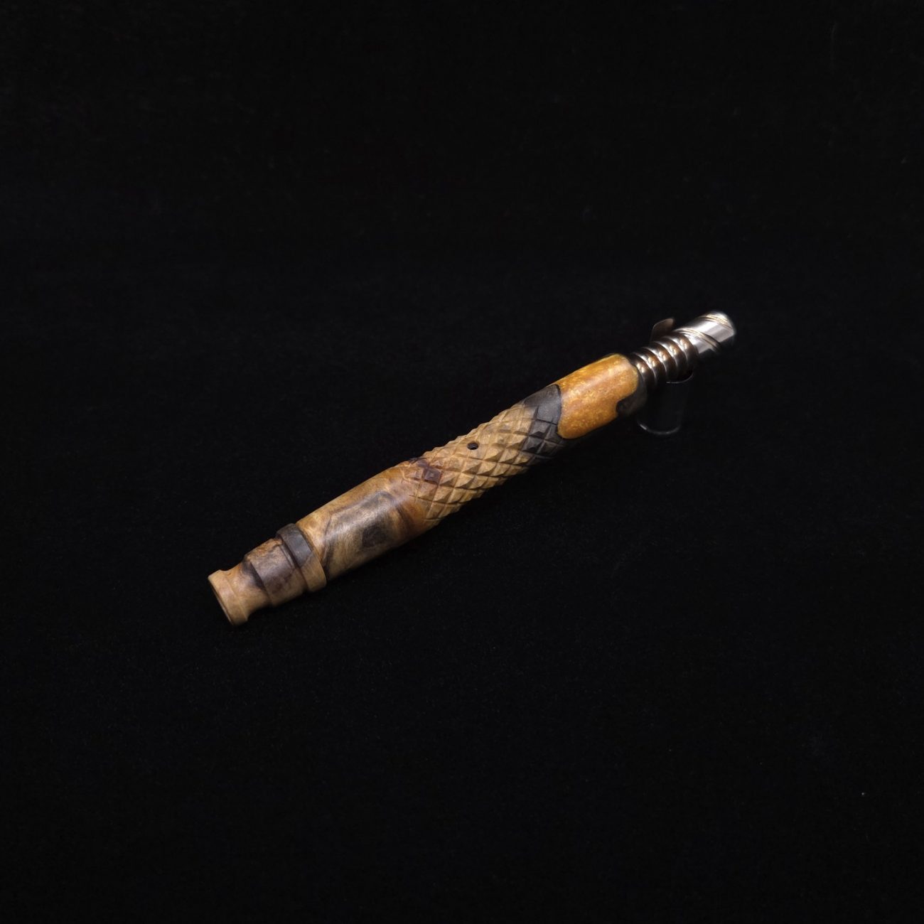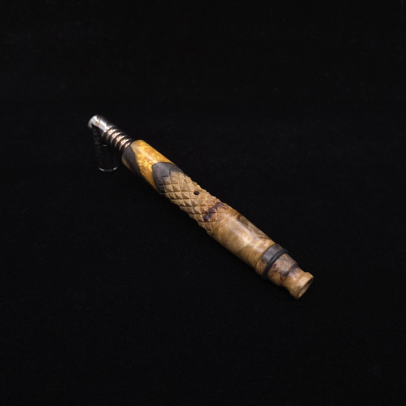 Series: Twisted Stems Design: Diamond Curve/Buckeye Burl Wood Hybrid Air-port: Curved Diamond/3mm Hole