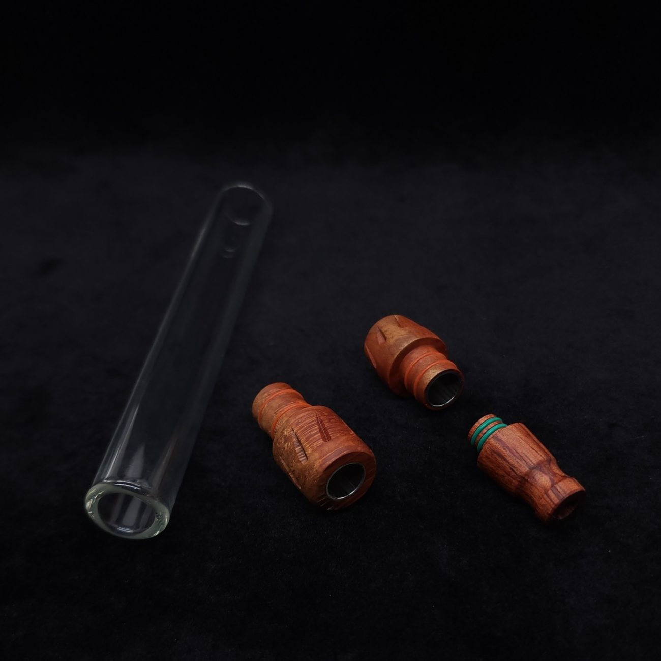 These are limited run setups, but we may add more periodically. They combine aspects of our wood stems that all have medical grade stainless steel liners to fit all Dynavap parts while removing the need for a condenser. Instead the glass tube acts as the main stem portion, giving you the ability to see how much vapor you’re pulling from each hit. These stem setups are able to pull monster hits and are perfectly paired with the HyperDyn tip/caps to accomplish this, though any Dynavap tip will work and produce different experiences with other tip/cap setups.