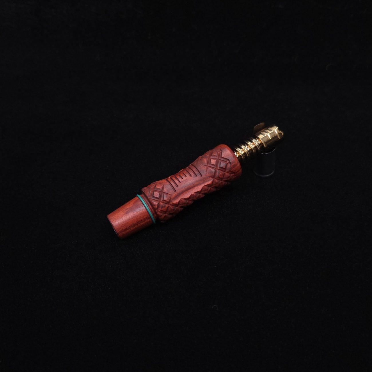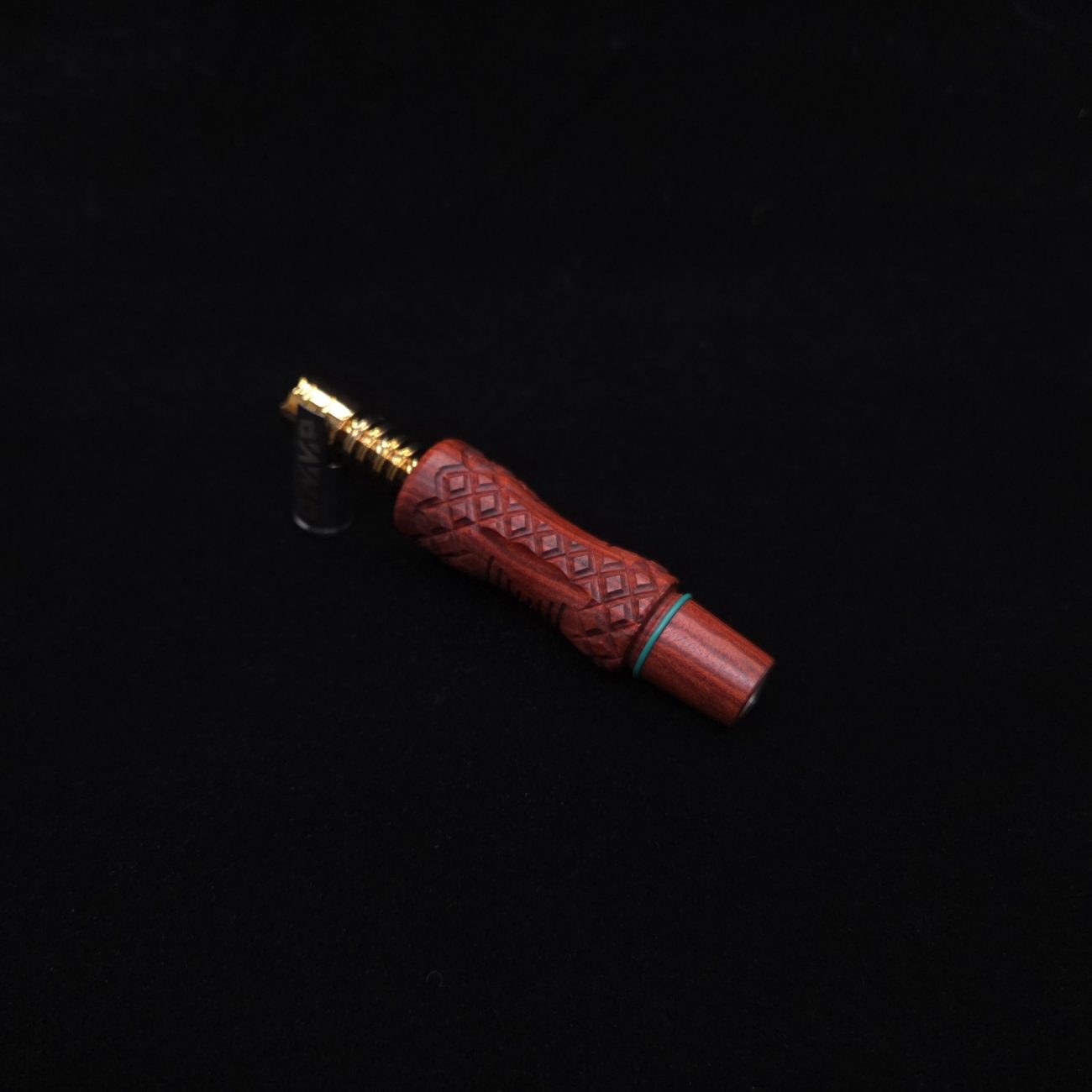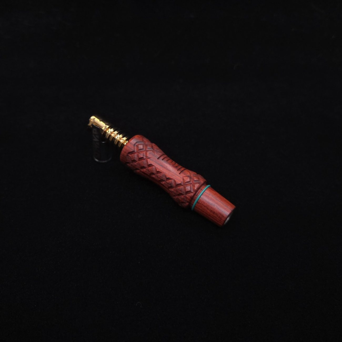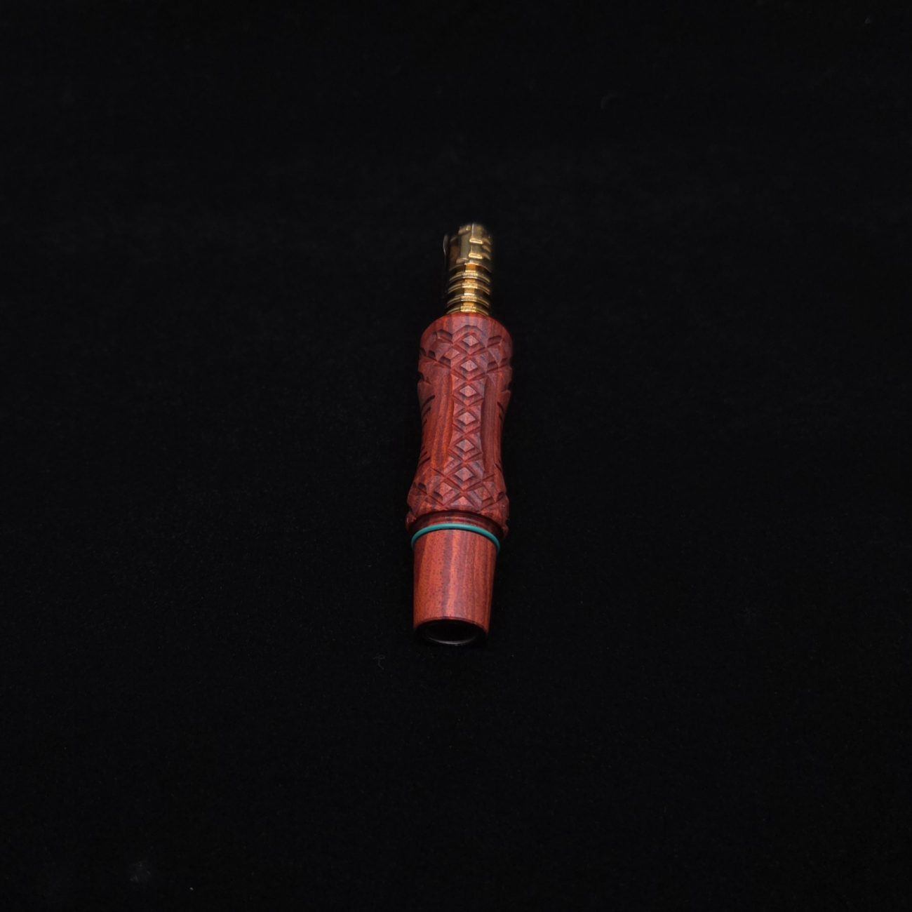 High quality redheart wood, WPA stem for Dynavap components. Inverted diamond curve design with a simple curvature and diamond accent profiles. These are our new WPA Dynavap stems that are made to mainly be used with a water device(bong). This WPA is made to work with a glass device that has a 14mm tapered hole. WPA has a concave center cut perfect for pulling from a glass device with added grip from the diamond design and gripping v-lines added within the concave curvature. Can be used with glass device or free hand like any other stem setup as well as capable of connecting mouthpieces via condenser and fits all Dynavap parts. Two groove lines on the taper give options for a tight hands-free seal or more easily removable seal. Simply move o-ring to desired groove on the fly. WPA has been done in a satin finish polishing which is all natural/food grade.