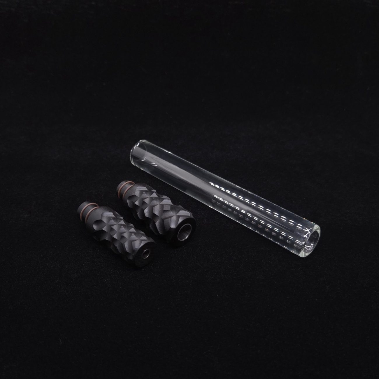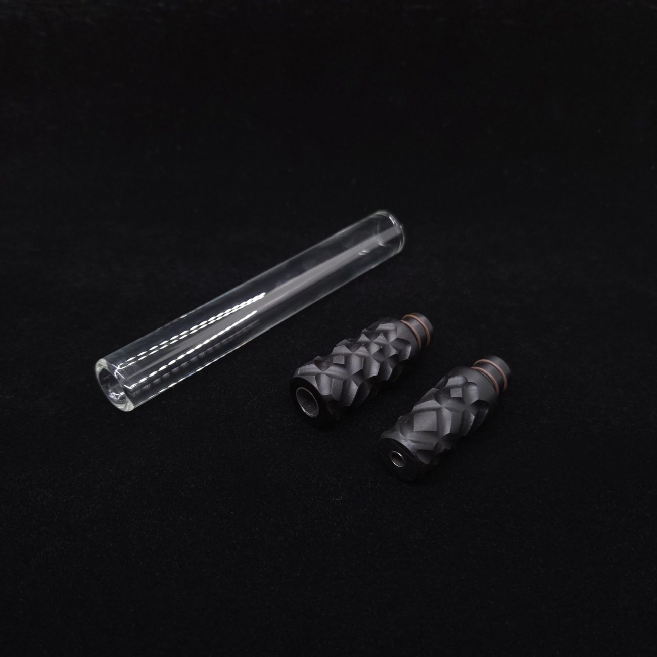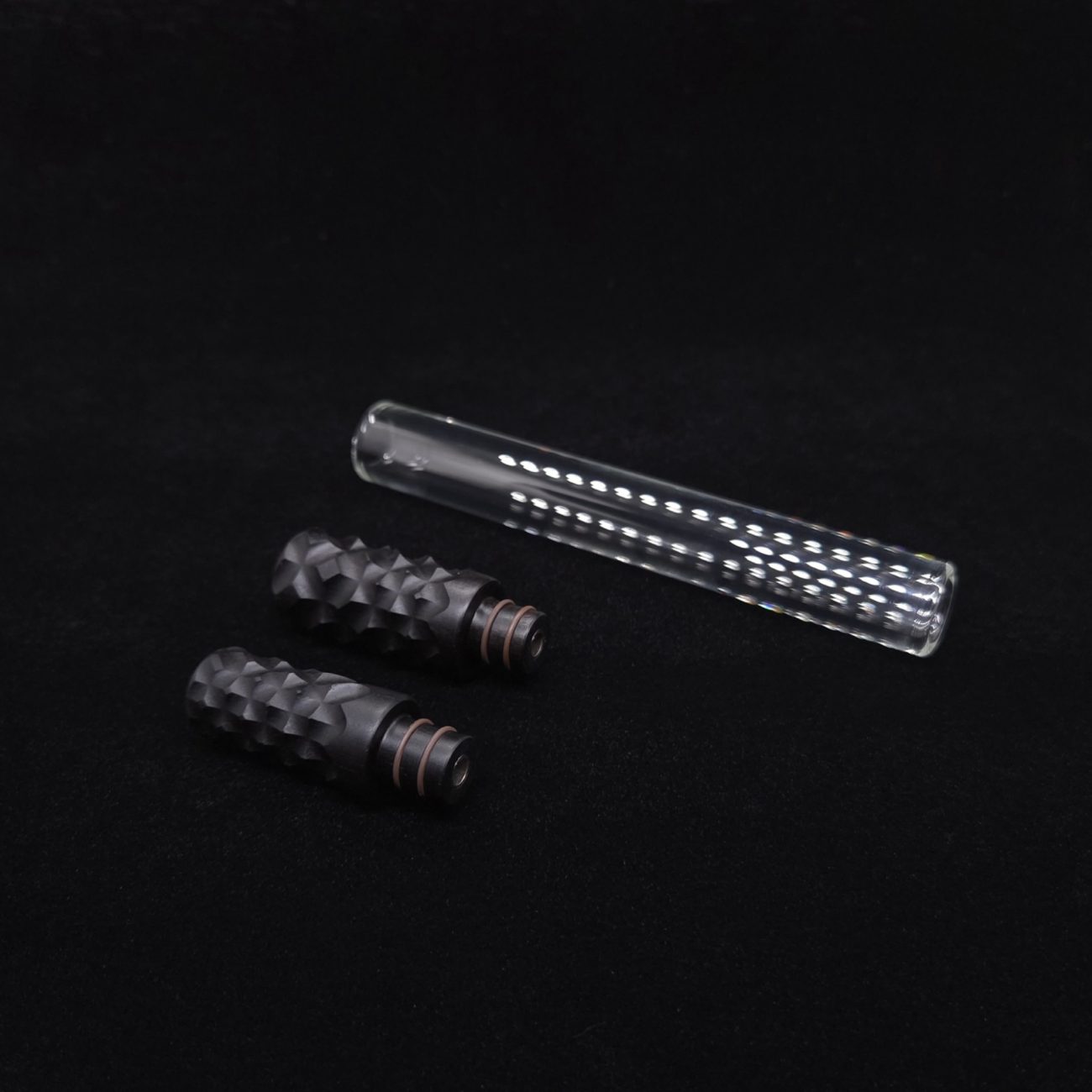 These are limited run setups, but we may add more periodically. They combine aspects of our wood stems that all have medical grade stainless steel liners to fit all Dynavap parts while removing the need for a condenser. Instead the glass tube acts as the main stem portion, giving you the ability to see how much vapor you’re pulling from each hit. These stem setups are able to pull monster hits and are perfectly paired with the HyperDyn tip/caps to accomplish this, though any Dynavap tip will work and produce different experiences with other tip/cap setups.