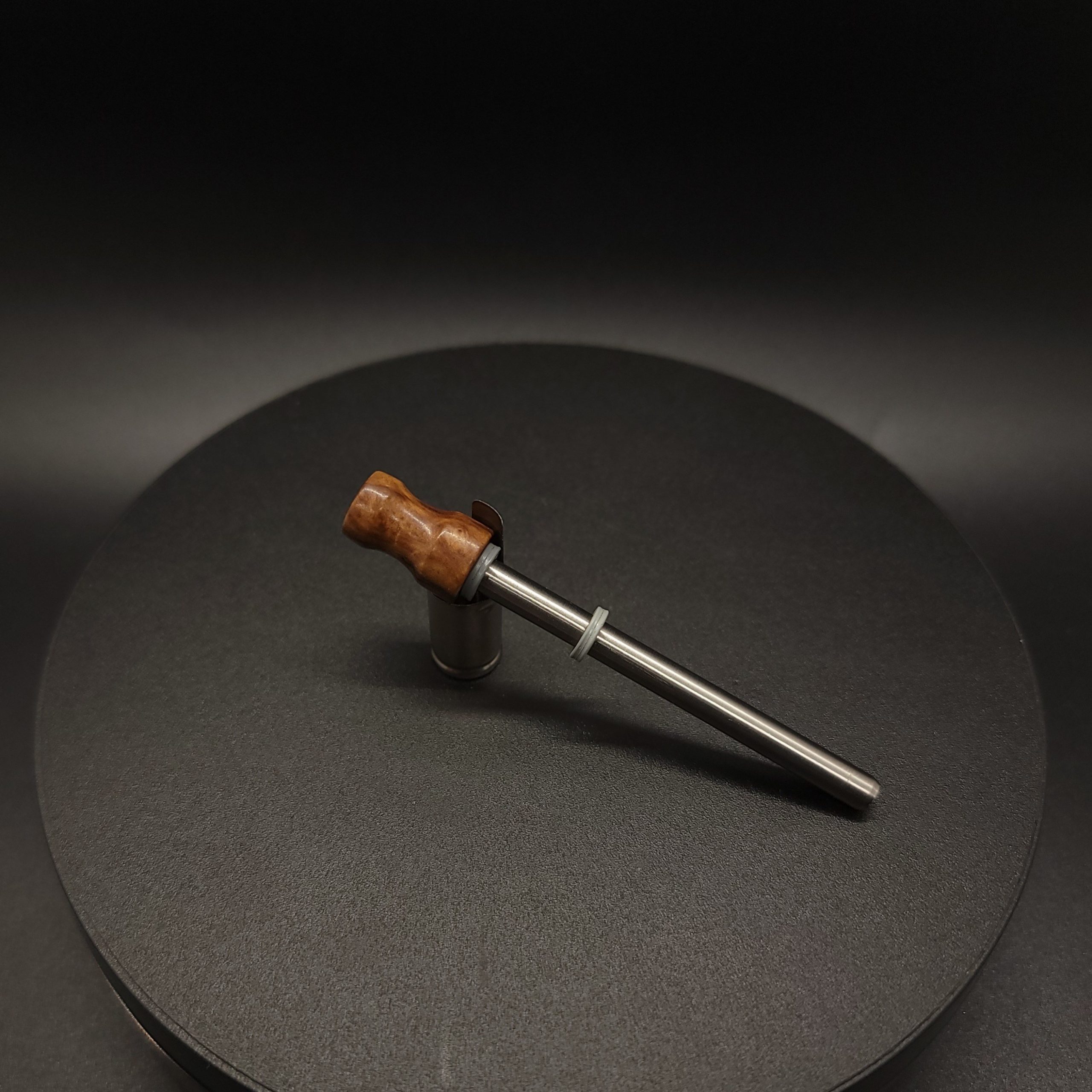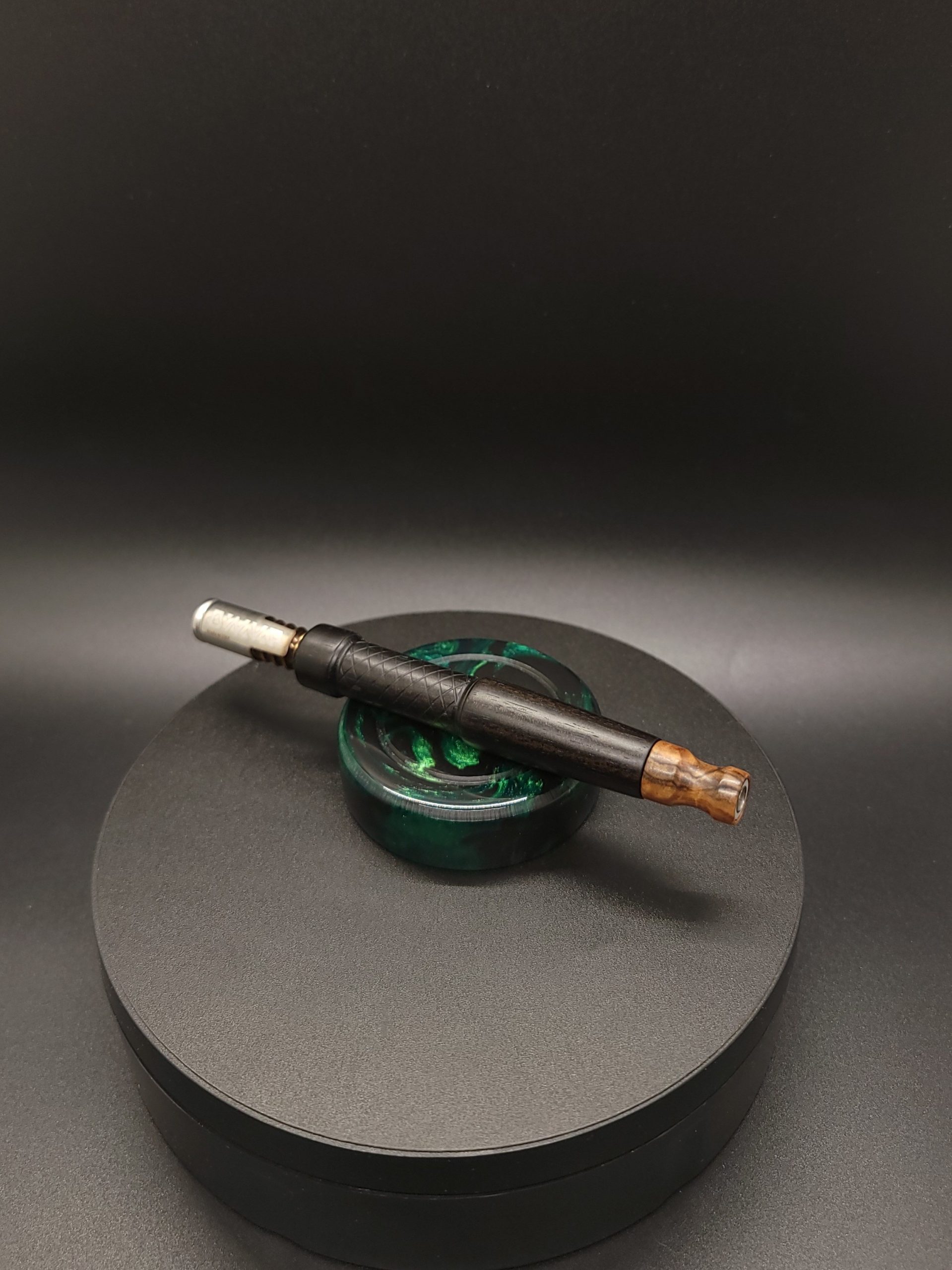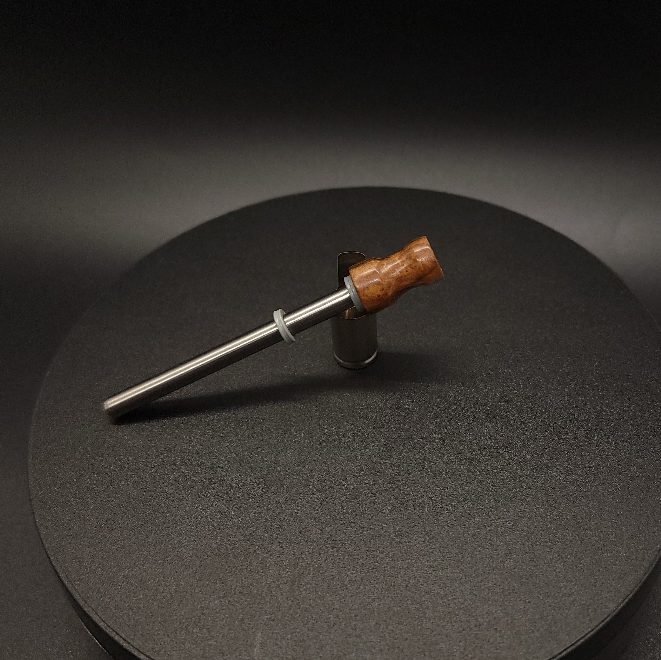 This spinning mouthpiece is made from a solid piece of graybox burl wood. As part of our new line of mouthpieces this acts as a replacement or upgrade to your current stem setup. It operates in the same way as the factory wooden mouthpieces you get from Dynavap. It has been stabilized along with precision drilled holes added to fit the condensers perfectly.