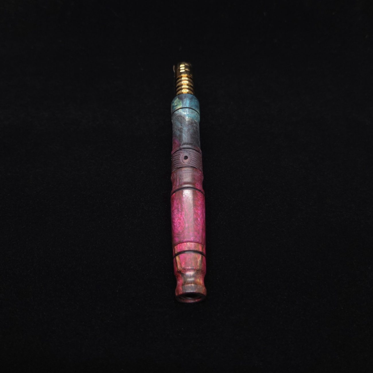Stem has a precision drilled hole that gets fitted with a thin wall, medical grade stainless steel tube/liner. This makes the stem perfectly compatible with the Dynavap parts as well as adding rigidity and weight making it feel nice when held. The weight also gives it the same feel when in use as your used to with the metal Dynavap midsections. Once the stem is created it then gets sanded and polished using our nature based polish/waxes. Everything made in our shop is hand crafted.