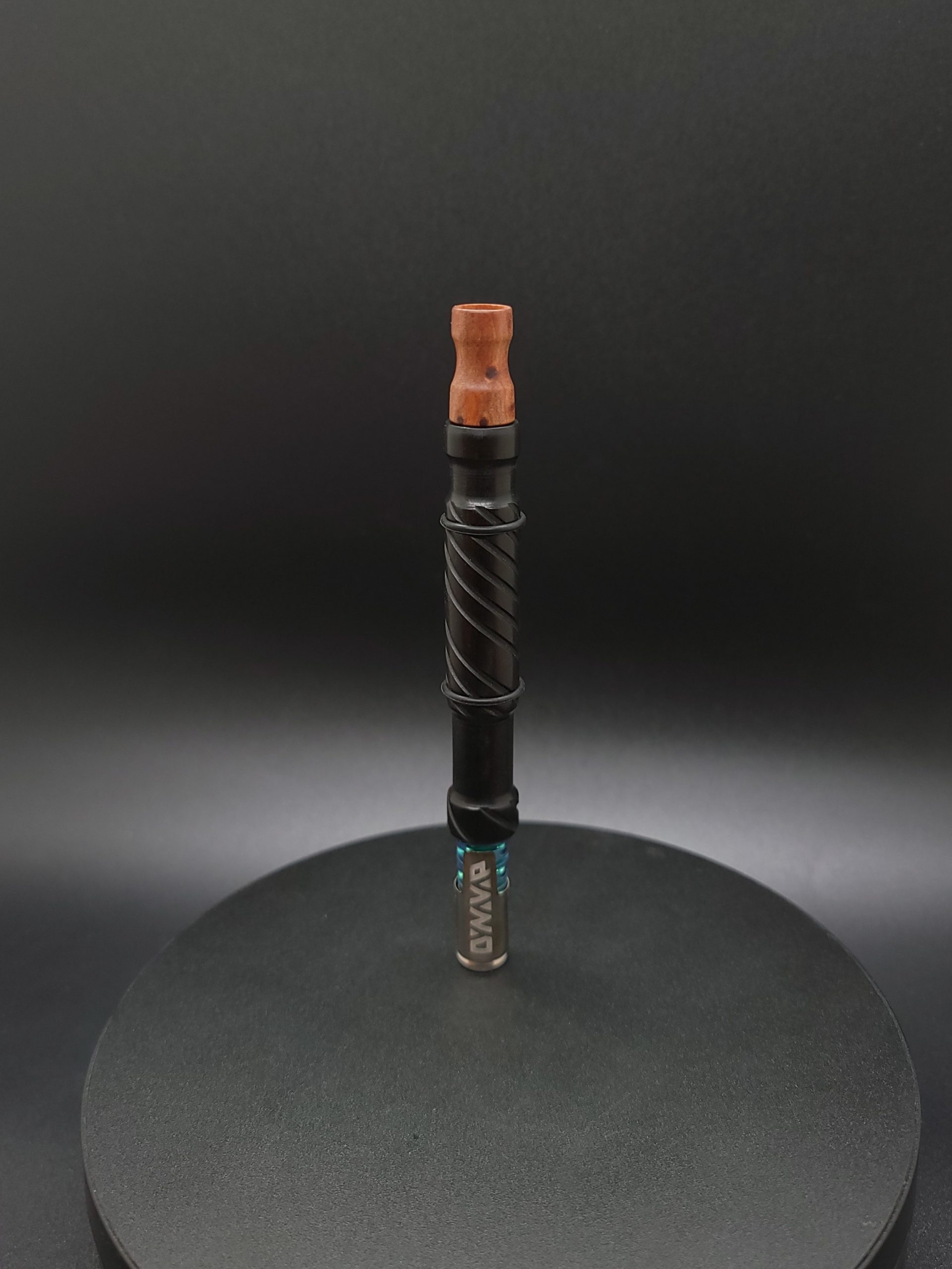 Ebony wood XL midsection for Dynavap parts. This stem has been designed with spirals cut in from tip to mouthpiece end. It has 2 grooves towards each end where you can place the o-rings to use with 14mm glass device if desired. You will receive 2 black o-rings with the purchase of this stem. Stem has been finished with a high gloss polishing.